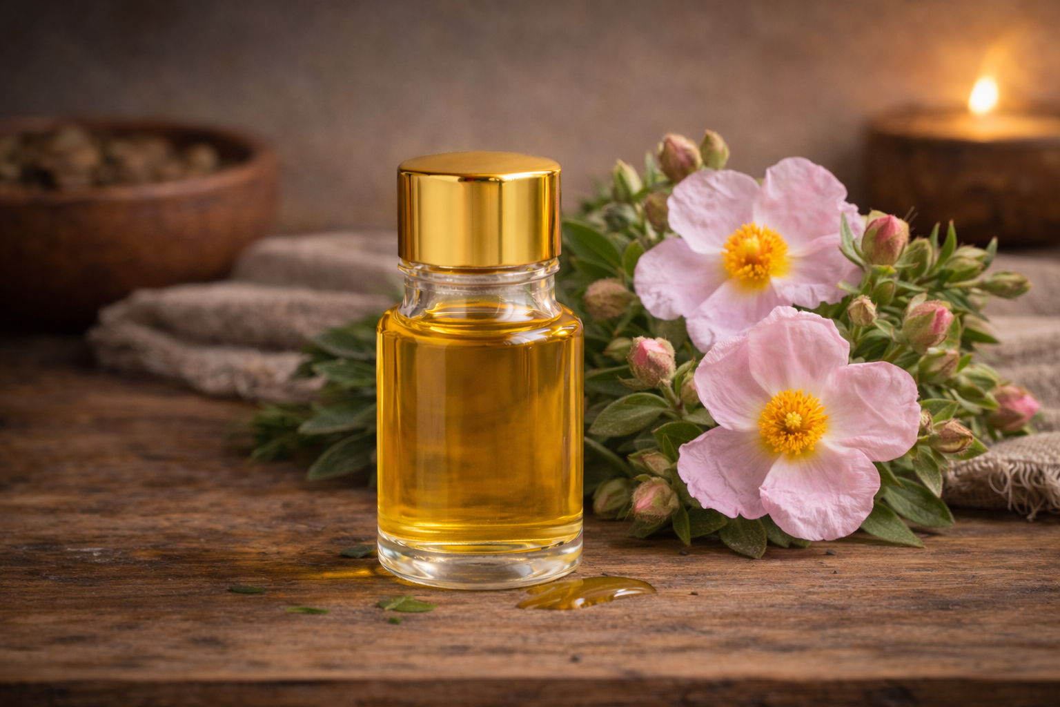 Cistusroos wordt vaak verbonden met bescherming en herstel. Een zachte, warme olie die helpt om tot rust te komen en je geborgen te voelen.